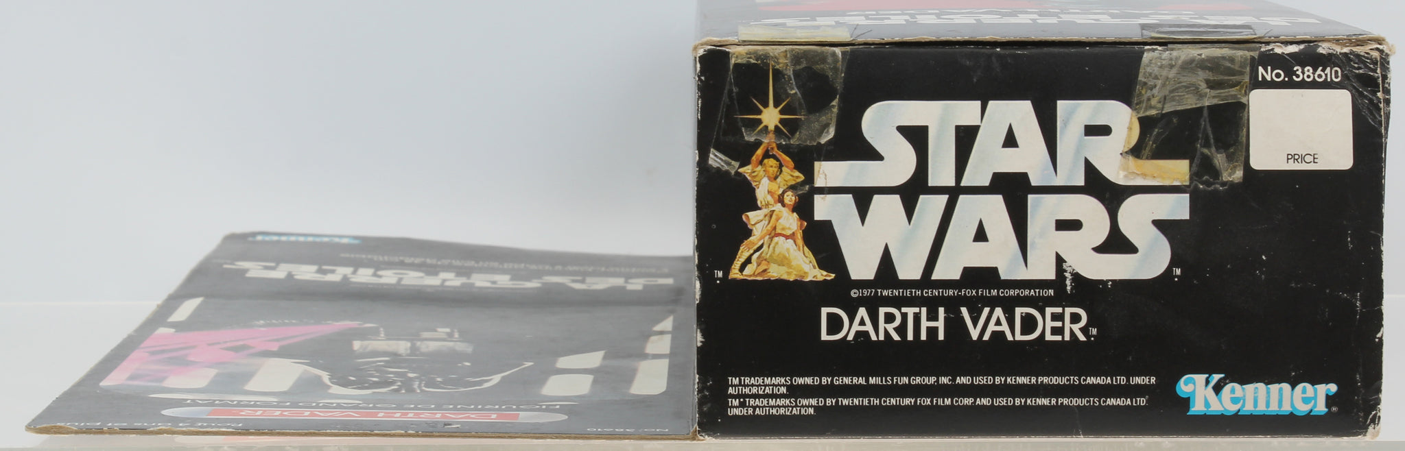 Star Wars 1978 Vintage Kenner Canada 12" Darth Vader Doll. As you can see from the pics, both of Vader's arms have detached for the torso. The box has moderate wear throughout. Please see the pictures for the exact condition and let us know if you have any questions.