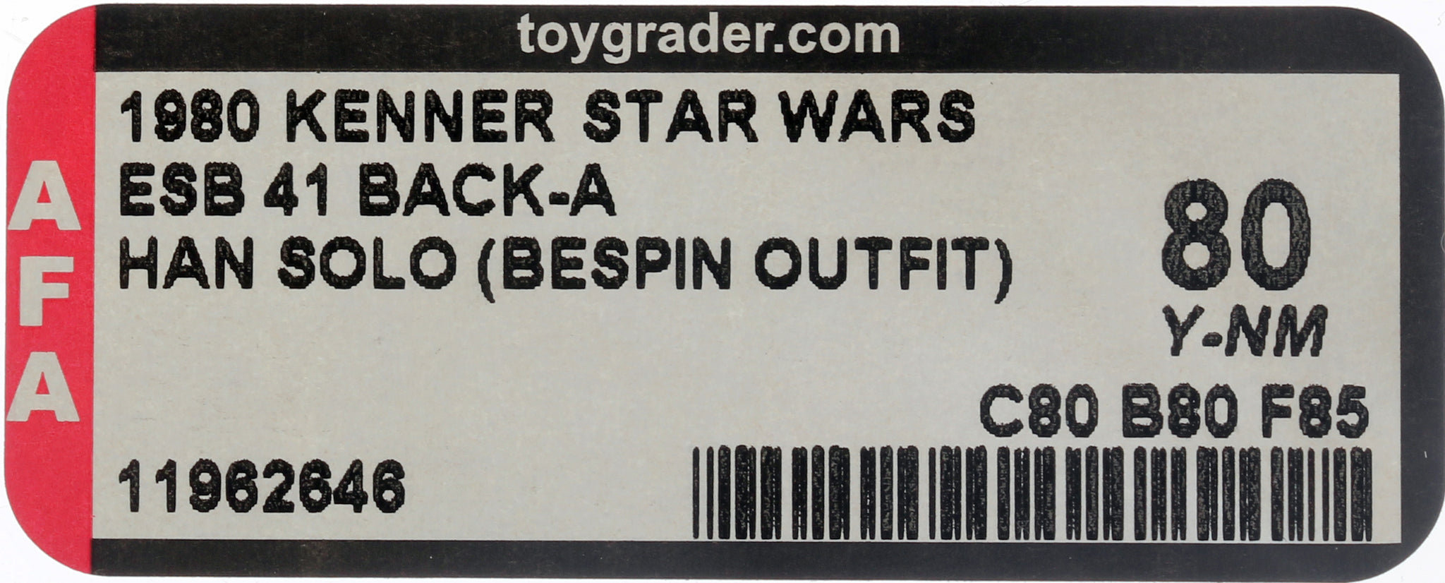 Star Wars 1980 Vintage Kenner ESB 41 Back A Han Solo Bespin MOC AFA Y-80